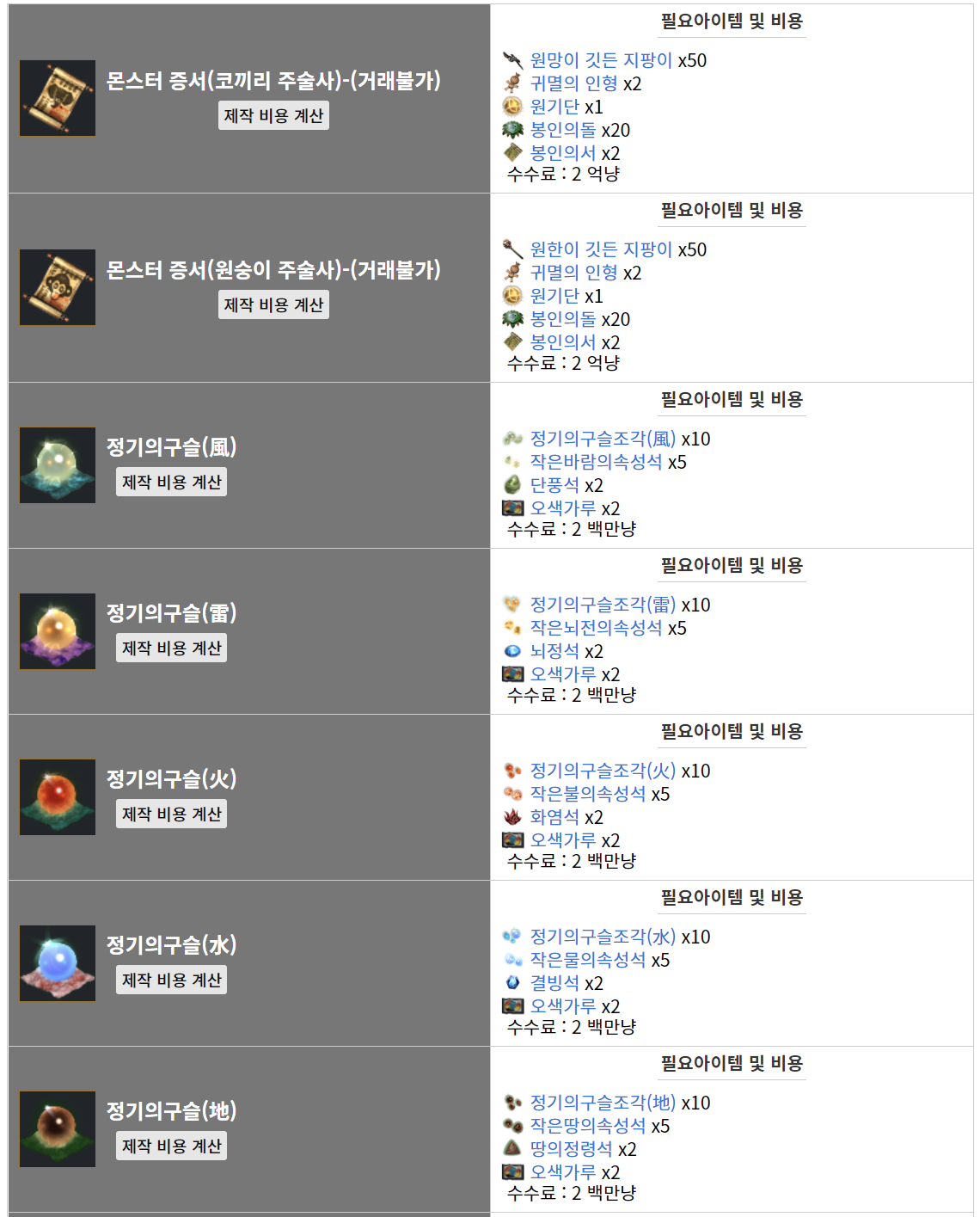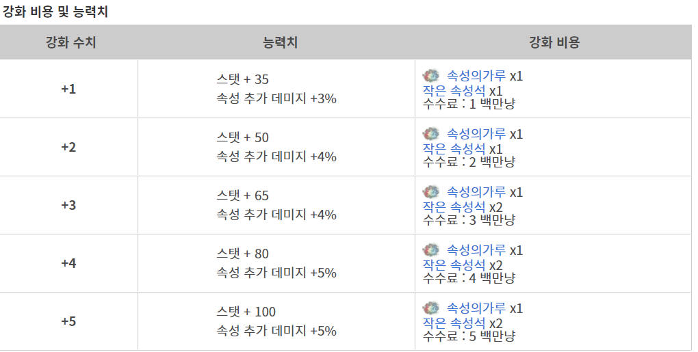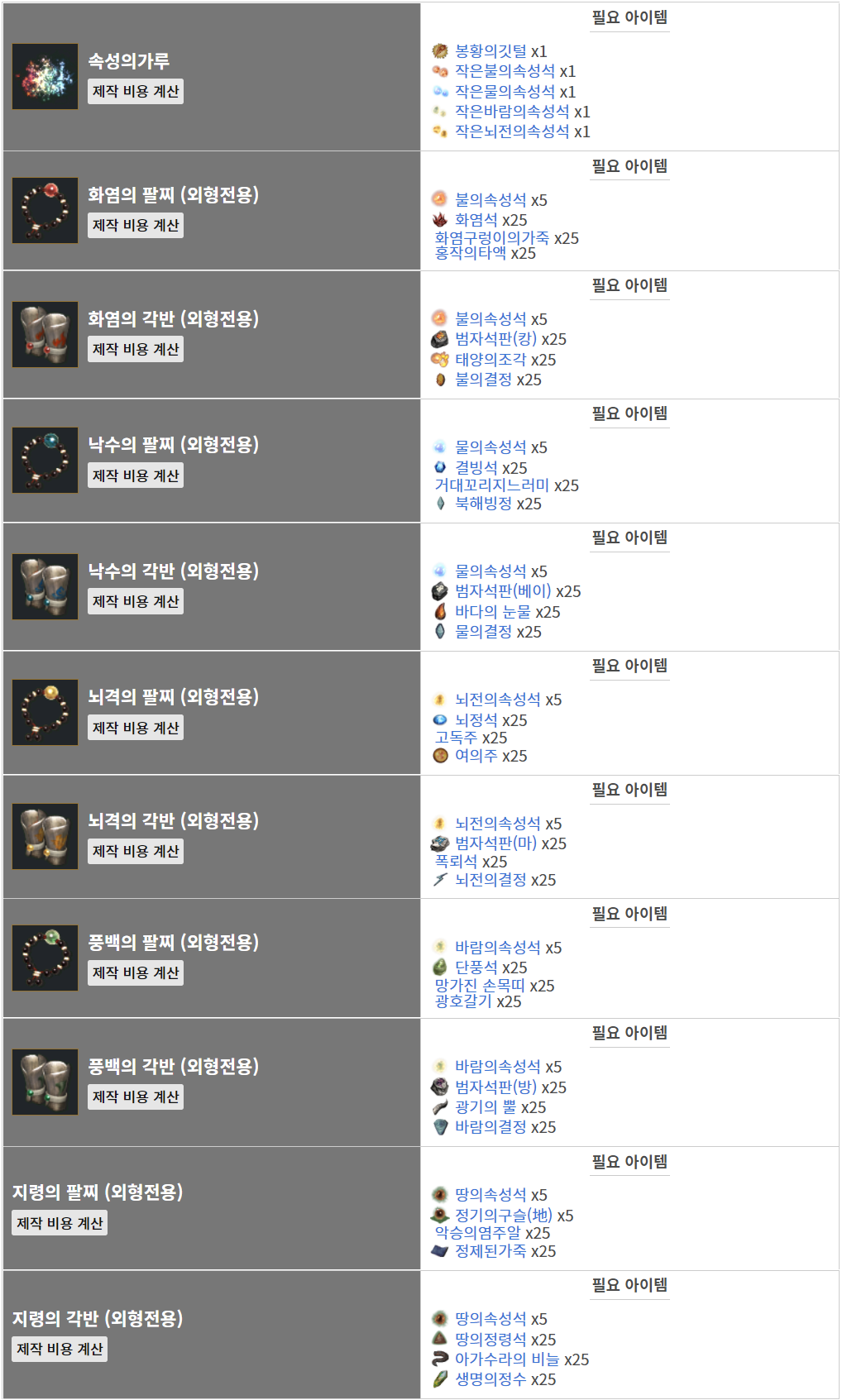 속성사_완 가능 아이템 목록
