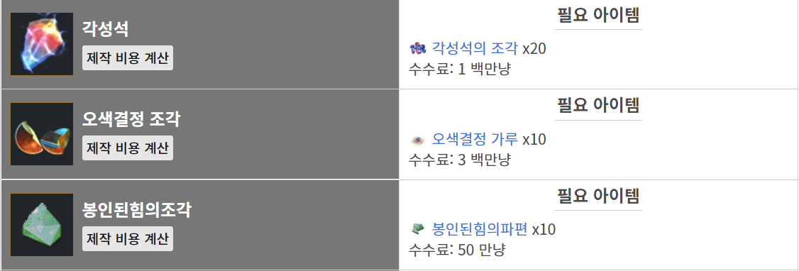 악몽의 구슬, 각성석, 힘의 근원 재료를 자급자족으로 제작하시고 싶으신 분들은
