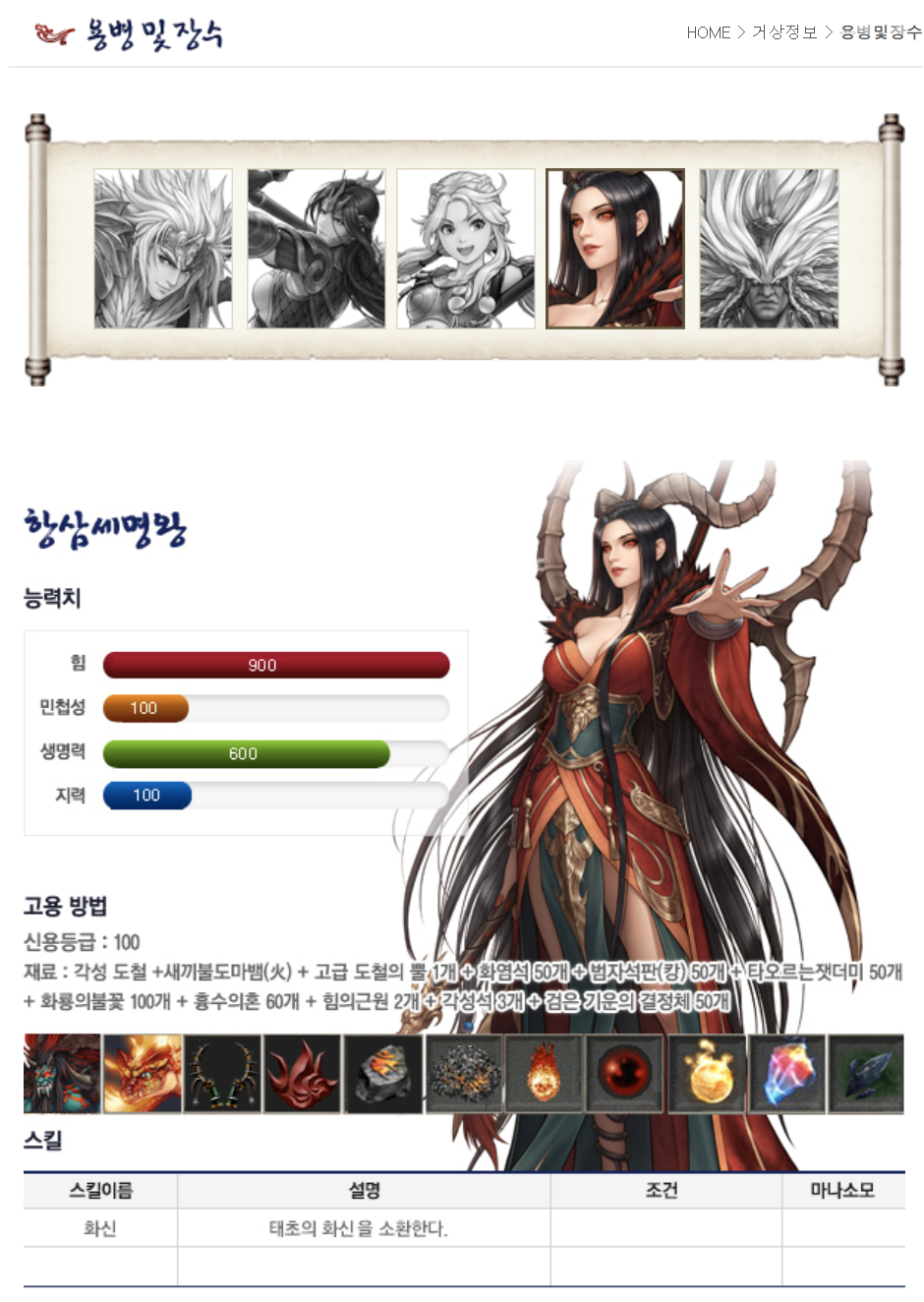 거상 항삼세명왕 스텟은