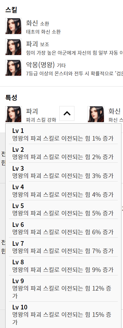 화신, 파괴, 악몽 스킬특성