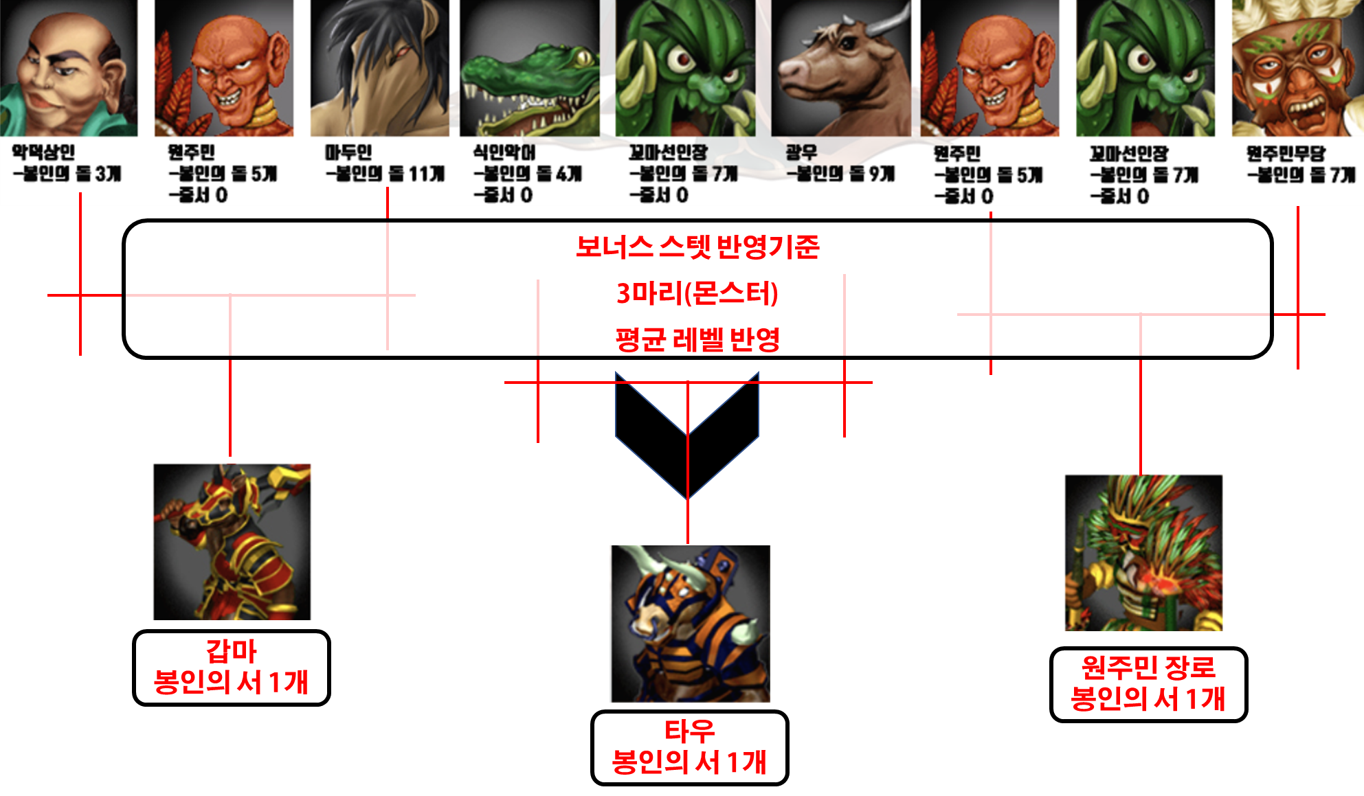 악덕상인, 원주민, 마두인 + 봉인의서 1개를 준비해서